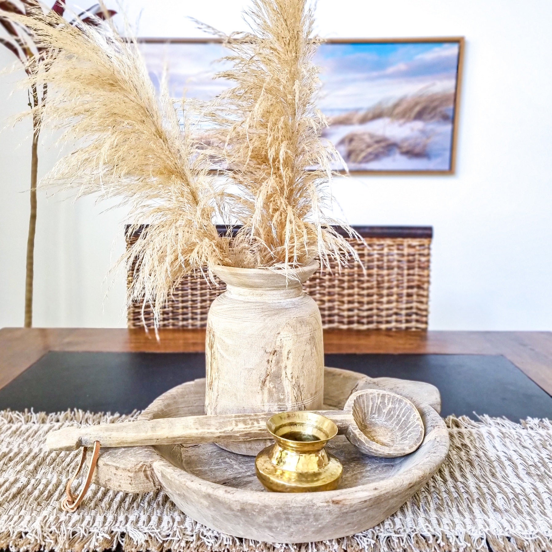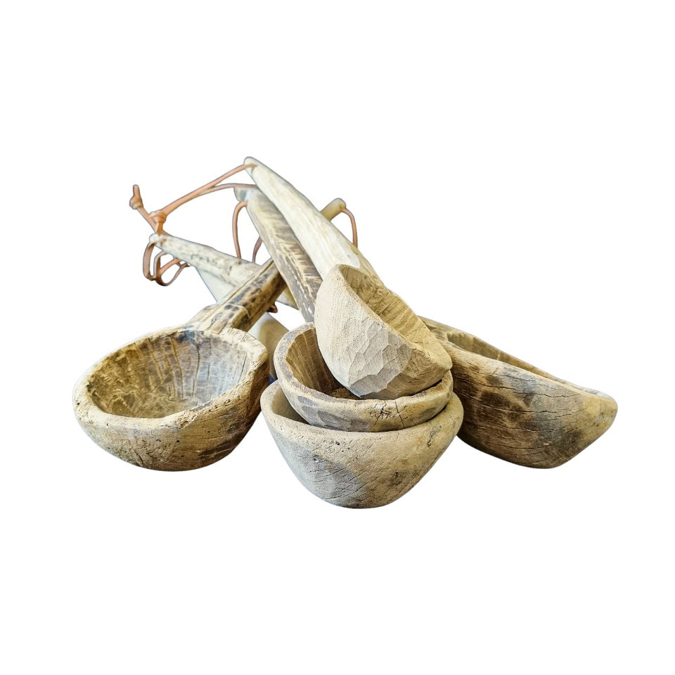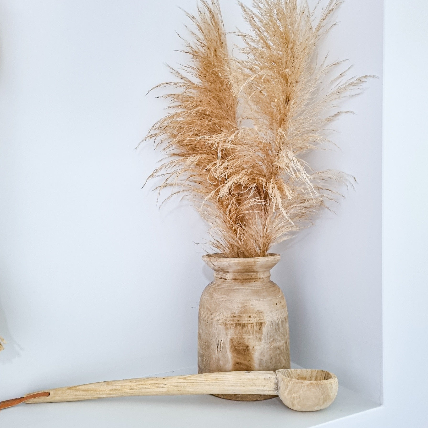 Originally functional utensils, these spoons are now treasured as decorative objects—perfect for styling on shelves, benches, coffee tables, or layered into a kitchen or dining vignette. Their organic shape and warm, weathered patina bring an effortless coastal and bohemian feel to any space.