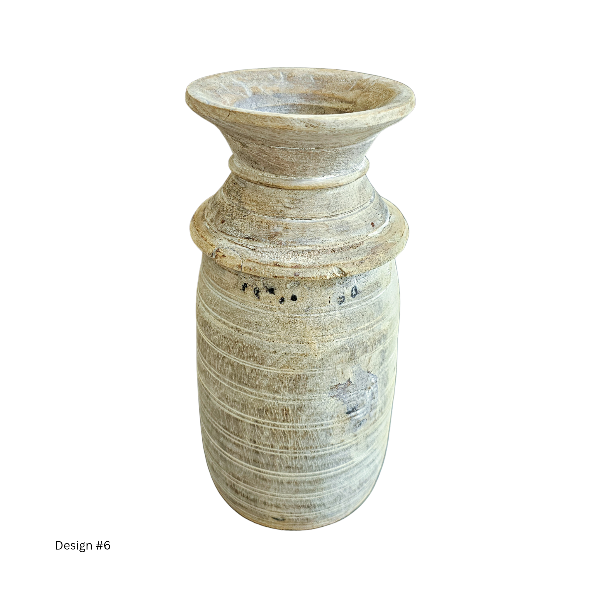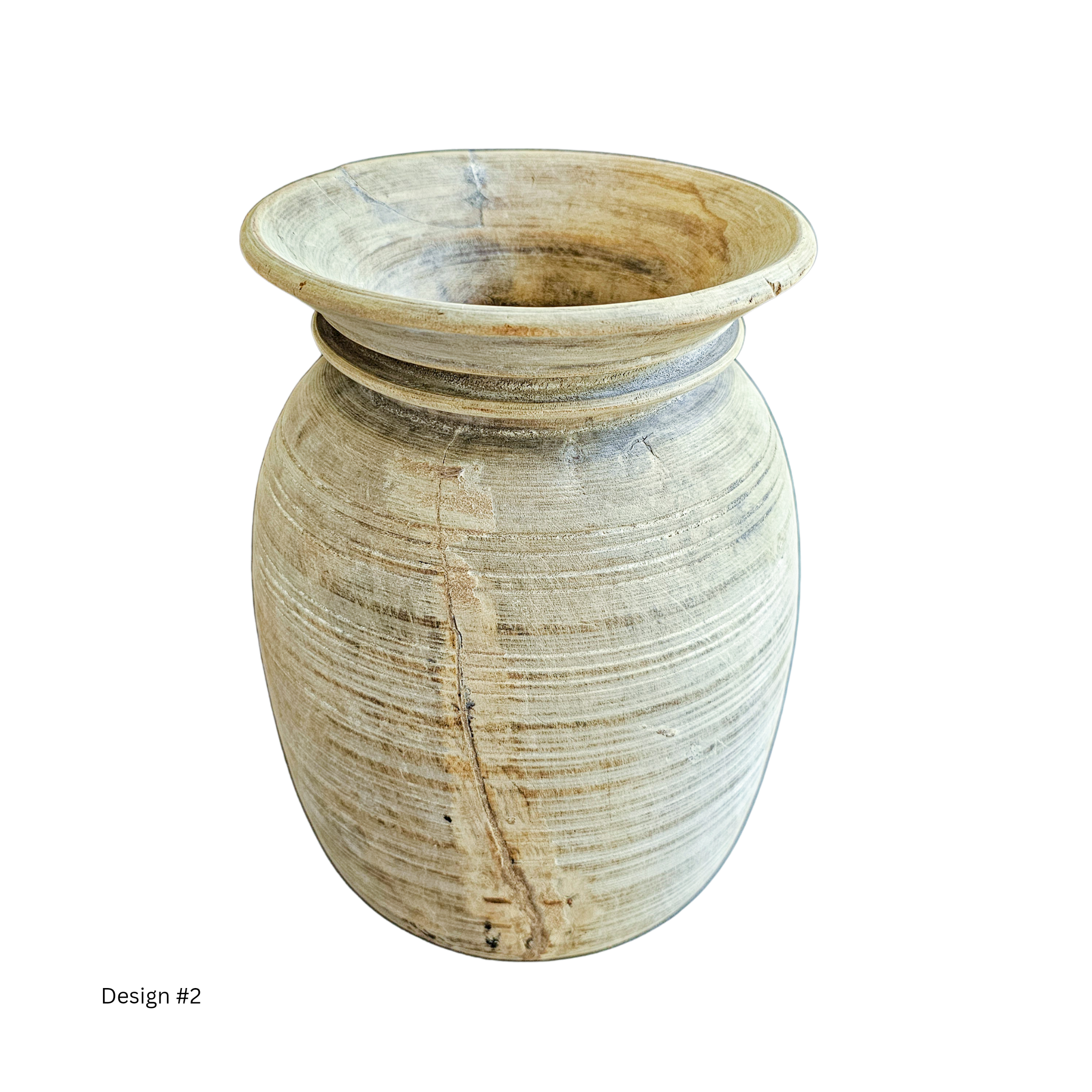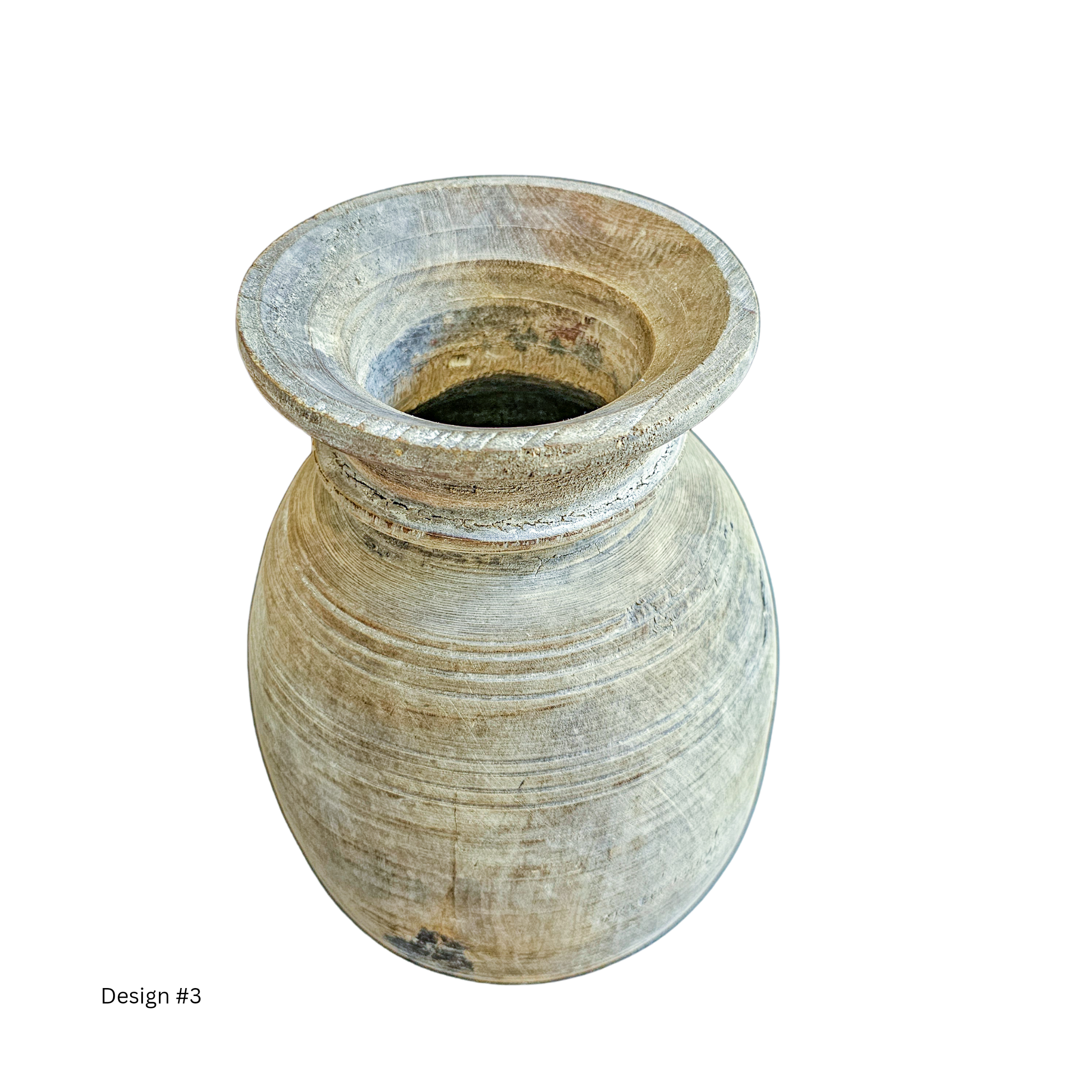 These authentic vintage wooden pots have a beautiful raw earthiness to them that brings a unique aesthetic to your home. Style on a bench top, table, shelf or console and create a centrepiece that offers a rustic vintage charm & character. They look beautiful left empty or style with some beautiful dried florals or palm fronds or fresh leaves.